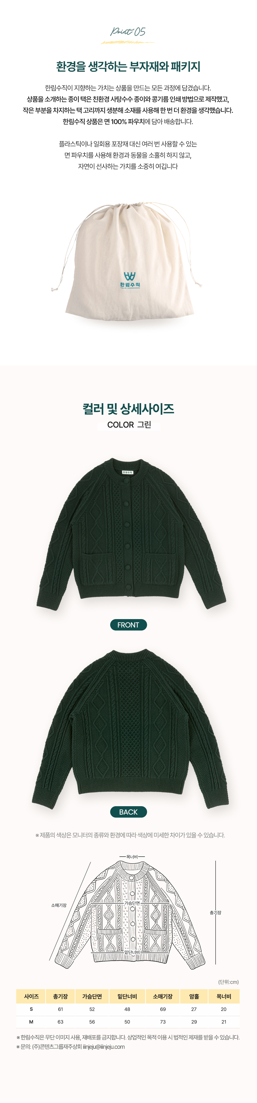 시그니처 아란 라운드넥 카디건-그린 CDRN-GR-2401