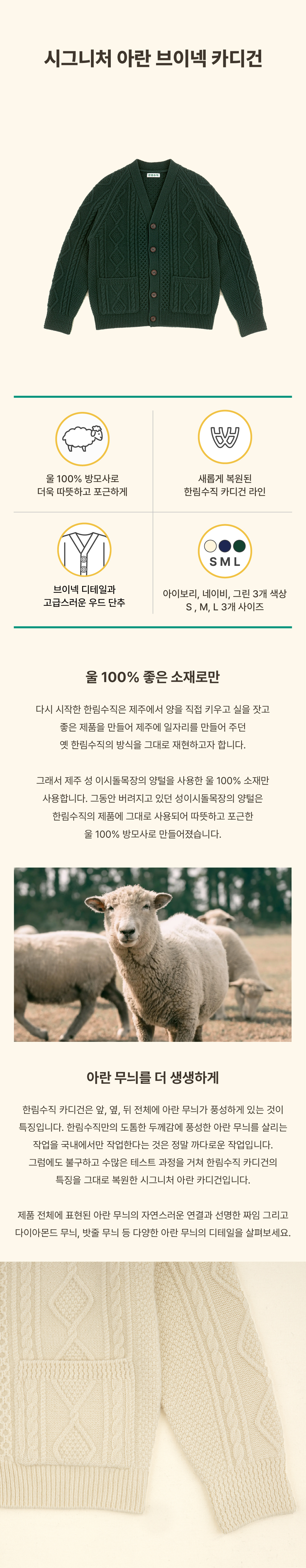 시그니처 아란 브이넥 카디건-그린 CDVN-GR-2401