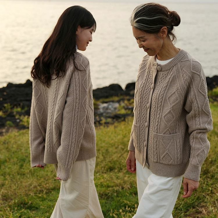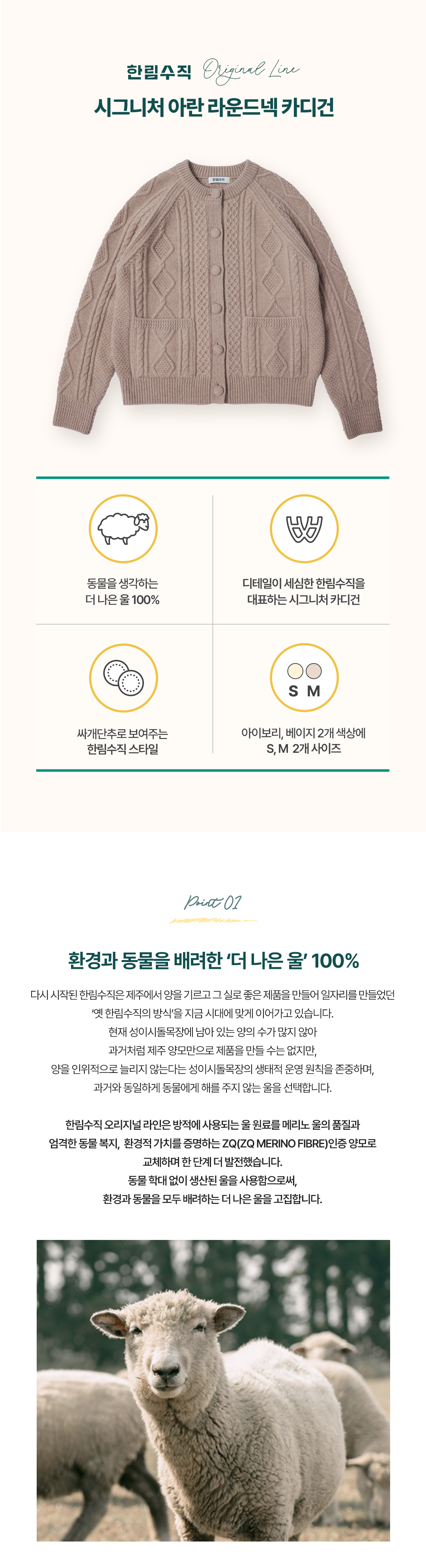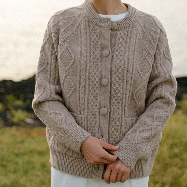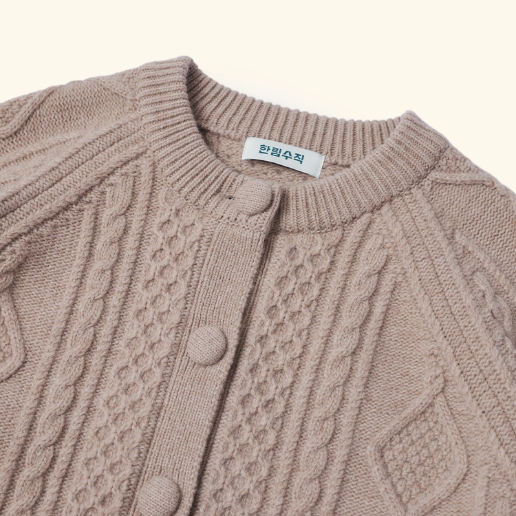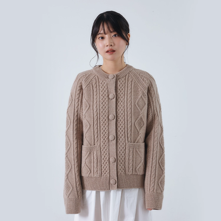 시그니처 아란 라운드넥 카디건-베이지 CDRN-BE-2501