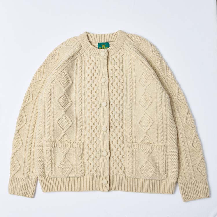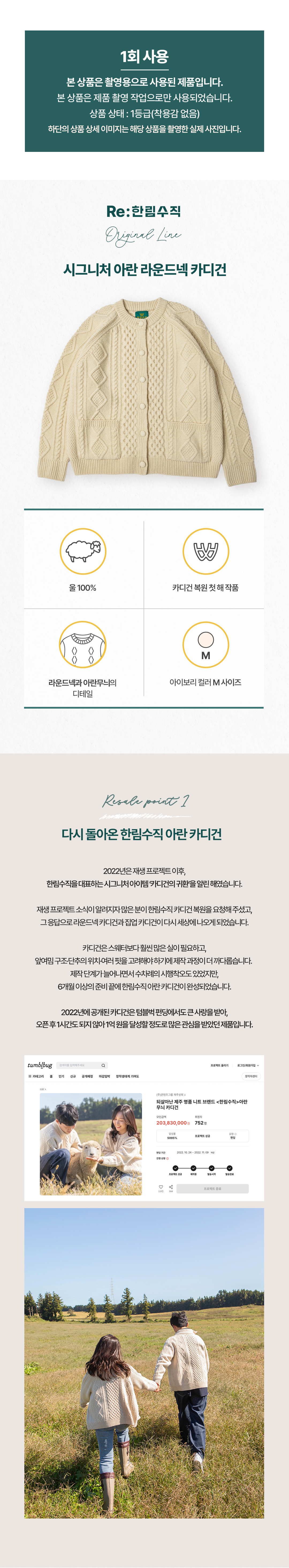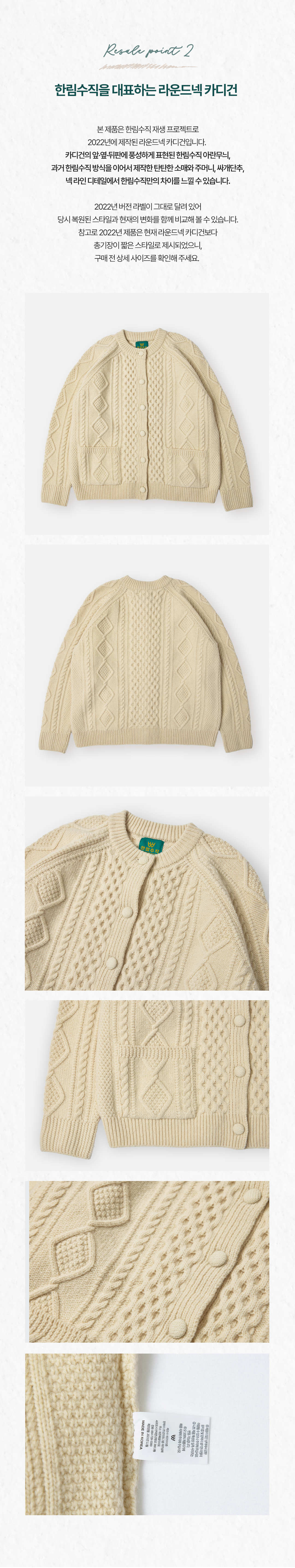 [리세일] 시그니처 아란 라운드넥 카디건-아이보리 M