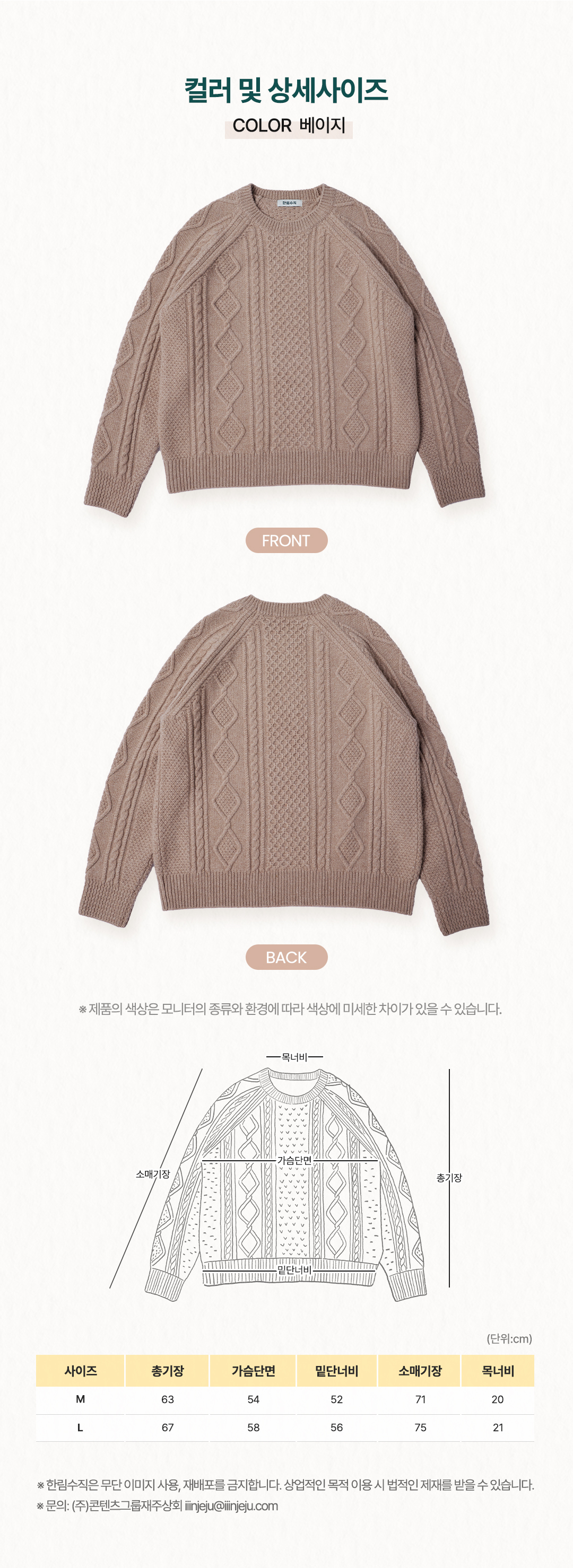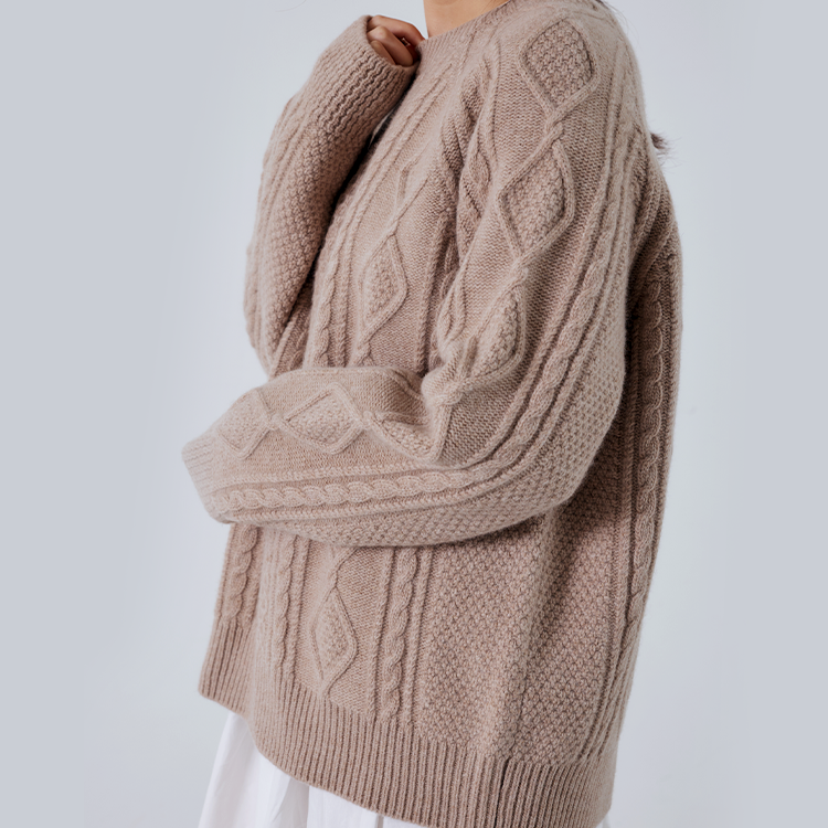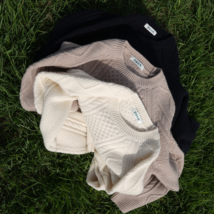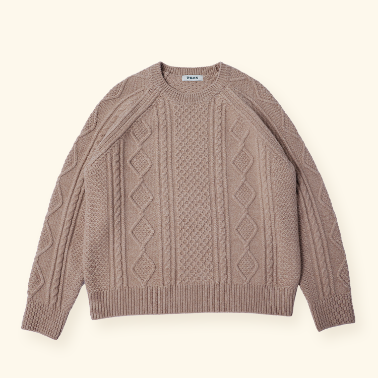 시그니처 아란 라운드넥 스웨터-베이지 SWRN-BE-2501